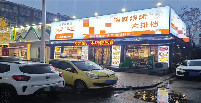 【店铺优势】本店是纯一层商铺,门宽十几米,位置明显,店内精装修,设施设备齐全,现经营烧烤海鲜,门前空地大,有停车区,适合多种餐饮行业经营,例如:烧烤、炒菜、火锅,地方特色菜,中餐等等,